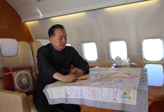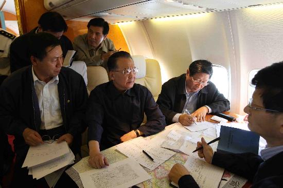 中共中央政治局常委、国务院总理温家宝已经抵达成都,正赶往汶川地震灾区,指挥抗震救灾工作。在专机上,温家宝发表了重要讲话。 据中央电视台报道,温家宝说,各级领导干部要站在抗震救灾的第一线,身先士卒,带领广大群众做好抗震救灾工作。要发扬不怕牺牲、不怕疲劳、连续作战的作风,一切想着人民,一切为了人民,一切为人民的利益而工作。 温家宝说,同胞们,同志们,在灾害面前,最重要的是镇定、信心、勇气