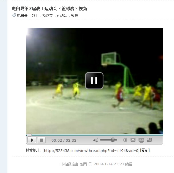 QUOTE(MTVV @ 2009年01月14日 Wednesday, 11:22 PM) 电白县第7届教工运动会(篮球赛)视频 http://525438.com./viewthread.php?tid=1194&extra=page%3D1 [snapback]2643322[/snapback] 播放不了