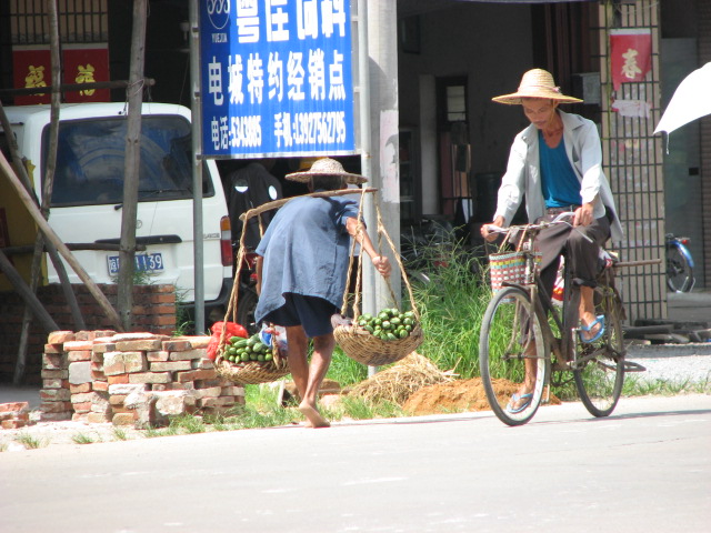 那时,疏菜市场都快散墟了,我停下车来问,"这个时候你的瓜还有人'打贩'吗?"他接着说,"可能没有了,我就担着到街里去卖,卖完就回家.""来我和你买几条吧!"我边说边挑几条.老人很高兴."不用称了,给你三块钱吧!"老头连连道谢.