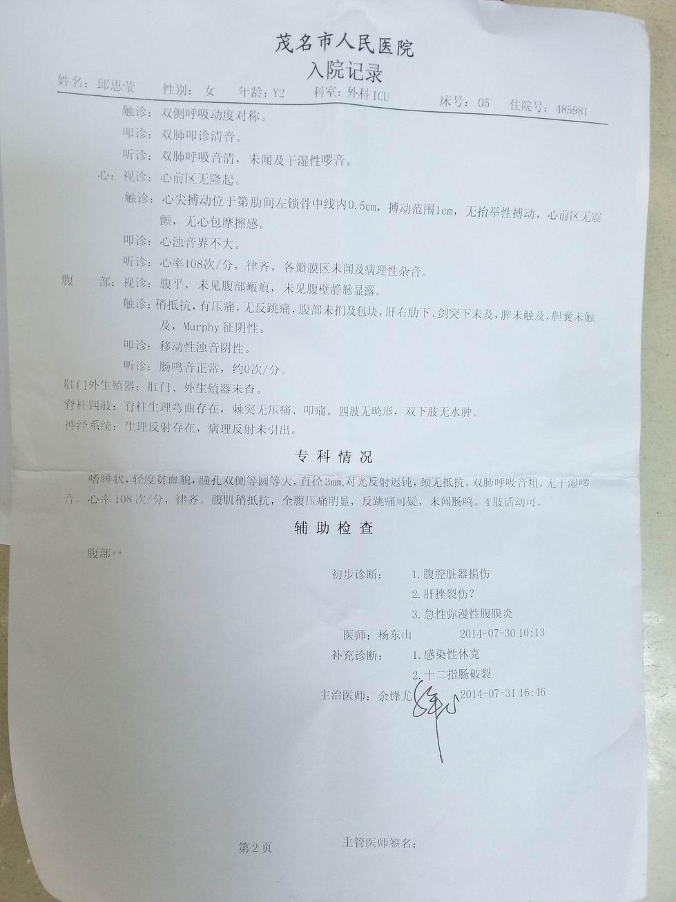 水 水东小学教师 初中二年级 注册 2011-12-04 消息 499 反馈评分 1 点数 1 2014-08-06 #52 QUOTE(微坛天下 @ 2014年08月05日 Tuesday, 09:29 PM) 从诊断证明来看,十二指肠全断不对,应是十二指肠破裂。综合情况来看,伤势比较严重,病情危急,时间就是生命,希望有钱的人士多积德,多做好事,善有善报,好有好报。 [snapback]3682450[/snapback] 那还是不是冬天?你希望人捐,那么捐了多少?