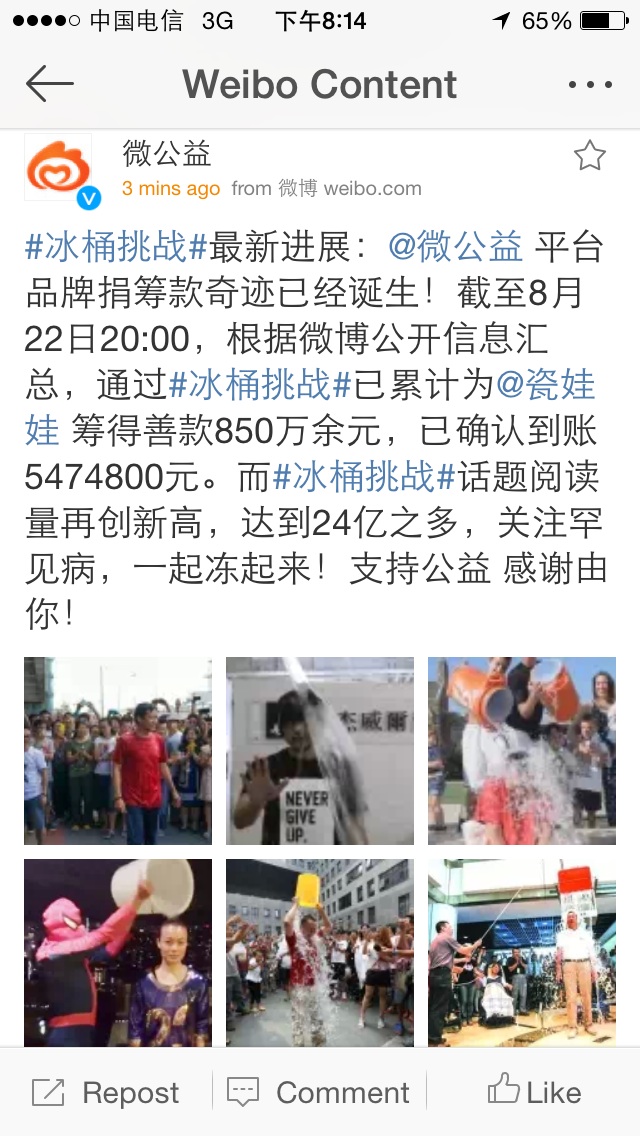 byronroy . 荣誉会员 注册 2005-08-17 消息 70,153 反馈评分 356 点数 191 2014-08-22 #220 [attachmentid=331644] 最近微博一次成功的募捐! 附件 image.jpg 234 KB · 查看: 507