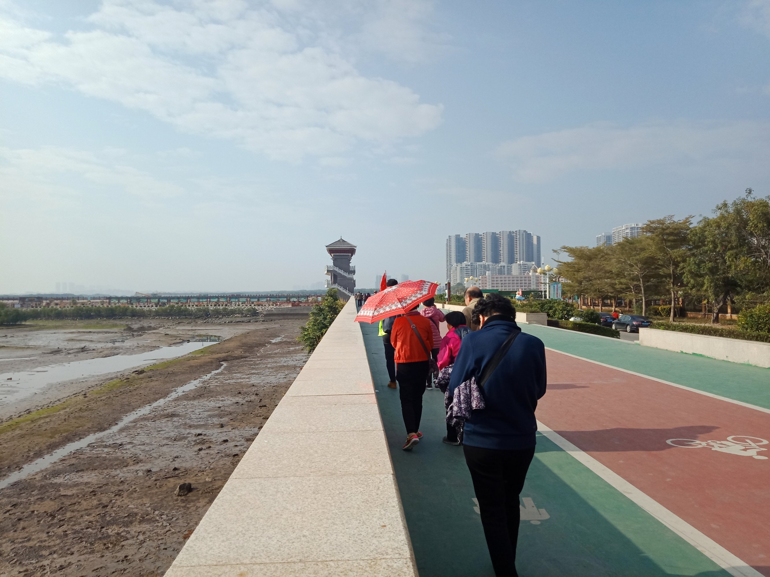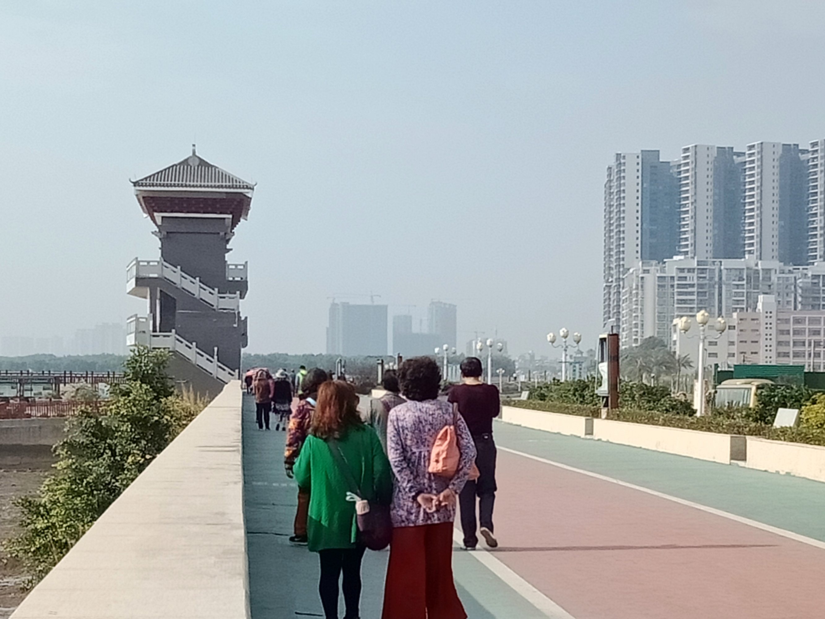交流 来到电白的外省外地亲爱游客朋友们,特走在海堤步道栈道上,是觉得暖和还是有点晒