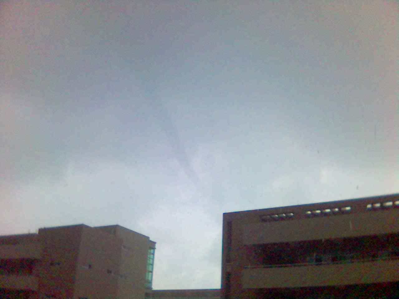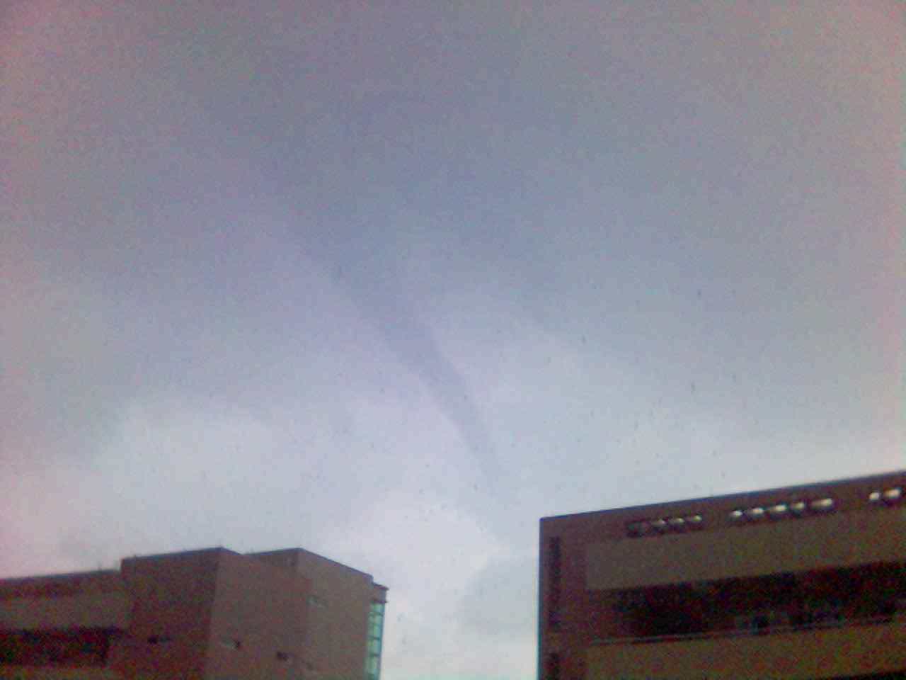 那天好像是星期一,下着雨,到下课的时候,大家出来透透气,看看雨景,谁知天上有条虫在动,妈啊,是龙卷风啊,~~~~~不过不大!!