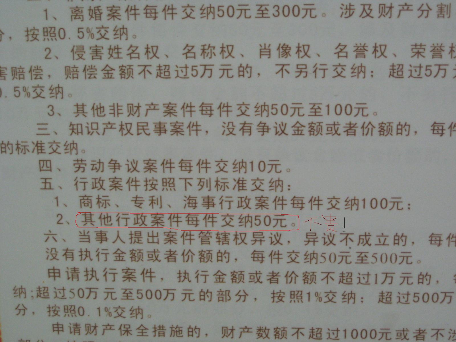 以下乃行政诉讼费:50元人民币!
