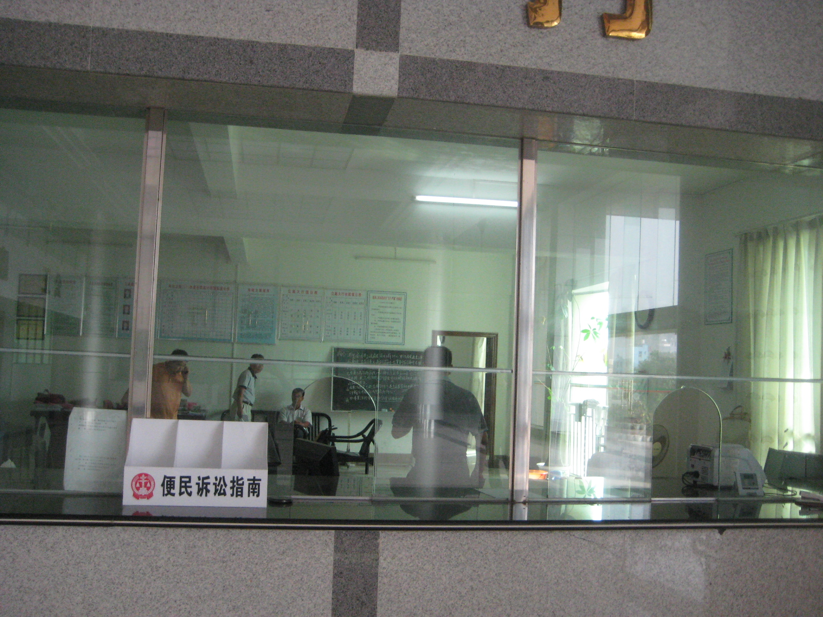 我很干脆地走出了那个办公室,径直地走到立案厅的窗口面前,拿出相机,想拍个照留念一下。然而,可惜的是,那个黑脸同志可能是少林寺出来的,他的身法很快,在我按下快门的那一刻,他倏地转过身,只留给我一个背影。