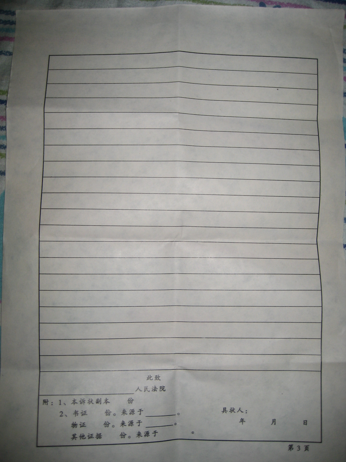 这是本人今天拿到的一份状纸,共3页。