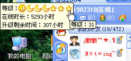 QUOTE(安臣 @ Feb 16 2005, 08:37 AM) 我仲K,都不知道自己几!!:( [snapback]242648[/snapback] 照你所发上来的图片来看,你是13级! 如果你不知的话,那么快点把你的QQ升下级! 最好用2004版的QQ,就可以查看等级了!