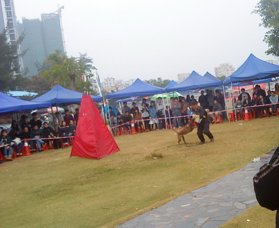 1月26日上午,来自水东地区,茂名市区,湛江地区,阳江地区,高州地区,信宜..等地区,在水东东湖舞池广场,迎来首届爱犬展,当日间中下着微雨,但各地区宠犬爱好者的参与热情丝豪未减,各自领着自己的爱犬参与角逐各项比赛,展现爱犬强劲艳丽一面!而下午即主持人所讲的,将由邀请嘉宾香港特犬训练院教官陈S与其助手们现场表演特犬追逐模拟疑犯场面与特犬爱犬营救主人解除危难险..等景象!(观场众切莫模仿)祝此展以后越办越好越精彩!