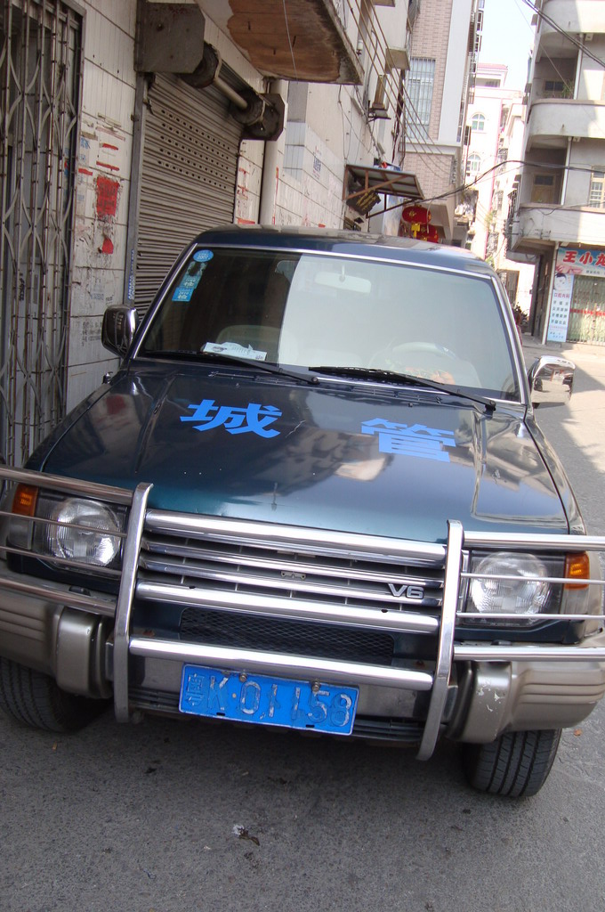 2011大年初二在茂名市电白县城新风街看到最牛的城管车(三菱帕杰罗越野车),在车上下来4个大小家属的人,开车的是一个40多岁165左右偏瘦的男人,他们走进新风街的小巷里,估计是刚刚从外面回家的。很明显这是政府公车私用了,但是令人费解的是为什么还把车牌故意遮挡,还停在人流量非常高的马路上,让人很气愤难当!