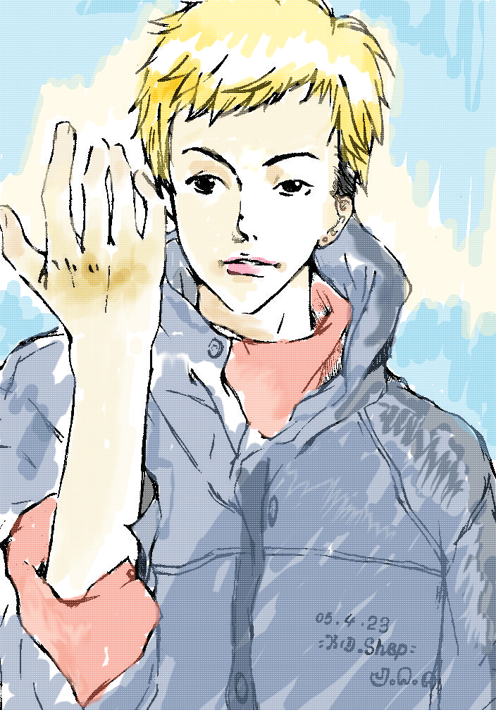 关于画中手上那个球是我用100的画笔+30的画笔点出来的.