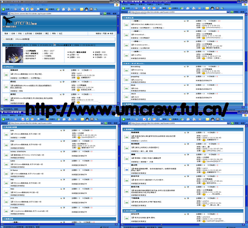 UMcrew街^联盟论坛 建站时间 2006-1-25 网址:http://www.umcrew.ful.cn/ 版块:UMcrew 茂名街头联盟 街^元素 HiP-HoP.MusIc.. 悠闲娱乐