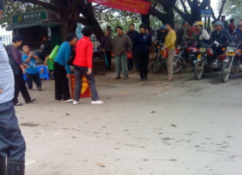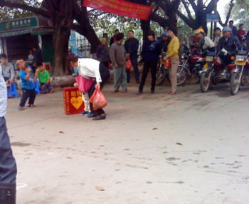,在水东西湖门囗,有群残障人士在卖唱,现场吸引众多围观群众,在中间摆着一个助残爱心箱,八挂静观时久,不时见有些民众向此箱投放几元钱不等,其实这景像已是司空见惯,是地球人都见过,而地球每个角落都存在,只不知这些群体靠不靠谱?但见那些勤劳善良的老乡们向爱心箱投放的景像,让俺刃母芯跤兴克颗意
