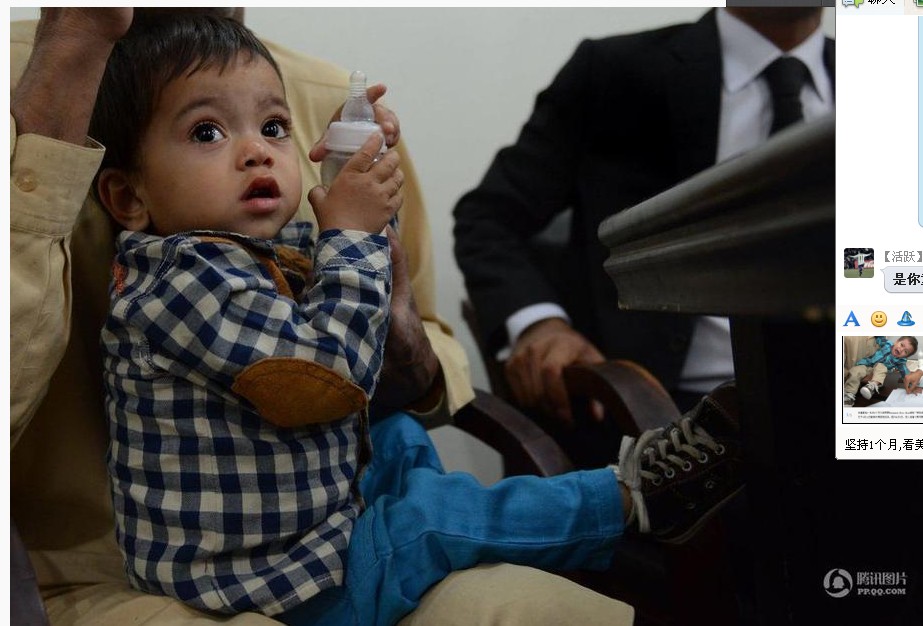 2.图为4月12日,巴基斯坦,庭审后,9个月大的男婴在坐在祖父腿上喝奶。据悉,Muhammad Mosa Khan及其家人在警察抓小偷的过程中,被指恐吓警察,干扰公务。一些警察表示,他们受到了木棍和石块的袭击,而其中一块就是男婴所扔。