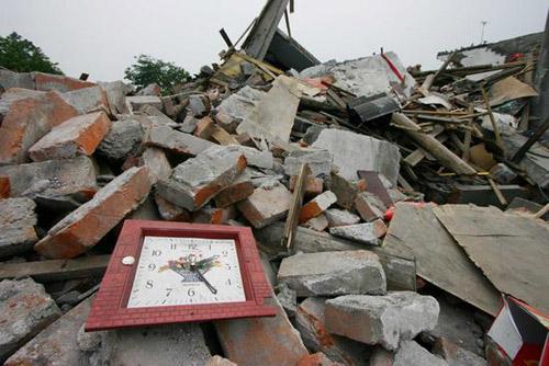 5月15日,地震过后的四川汉旺。东汽中学,一遇难女生手上仍紧紧攥着笔。