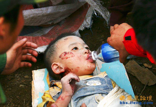 5月18日,汶川映秀救援现场,汶川映秀镇幼儿园的孩子妈妈拿着5岁孩子的最后照片。