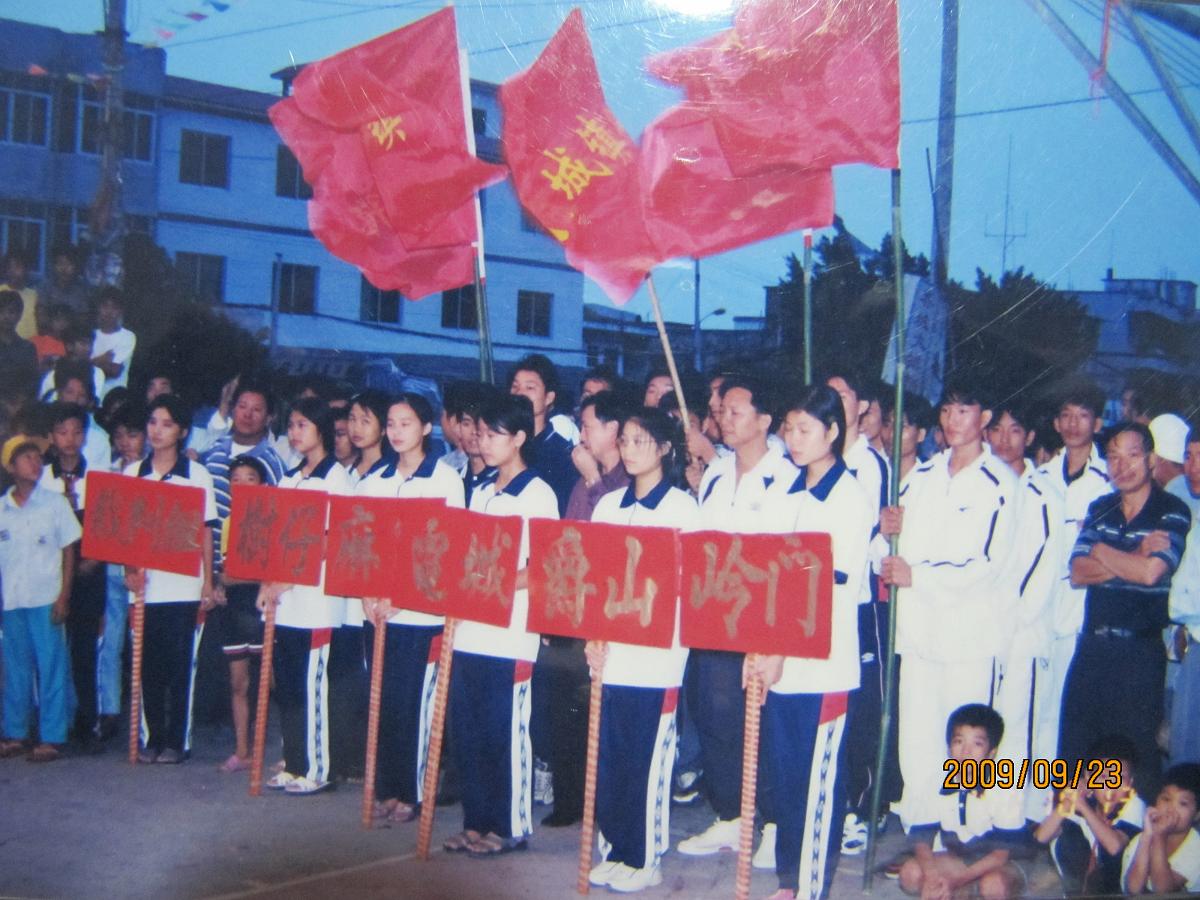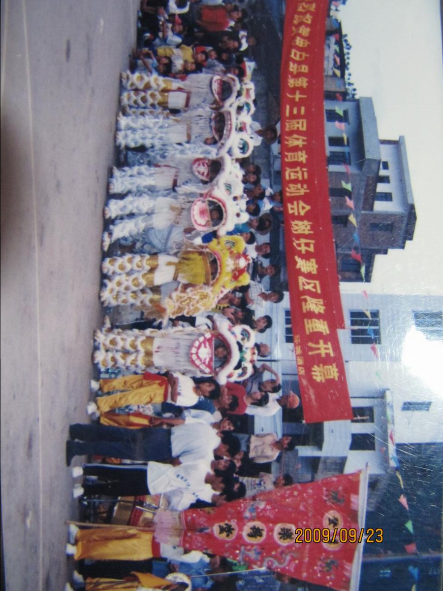 2000年10月,树仔篮球协会承办了电白县第十三届体育运动会篮球比赛沿海赛区的赛事,这是当时开幕式的场面,树仔中心小学少年先锋队和登楼武术协会舞狮团作精彩表演!