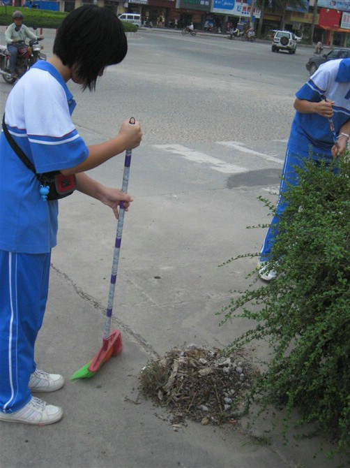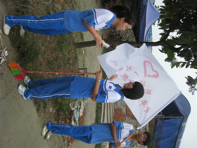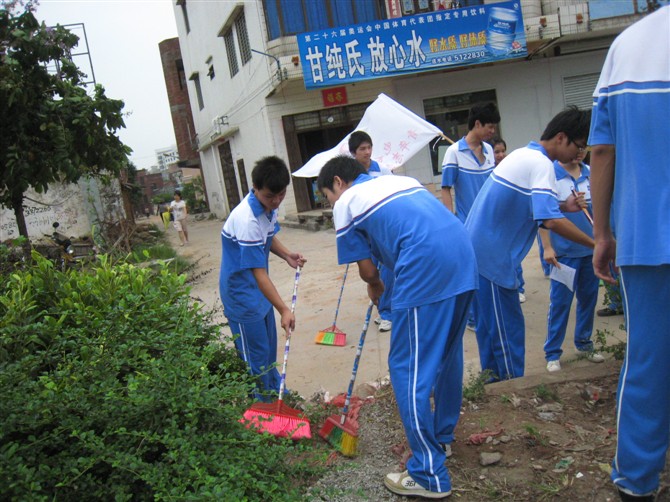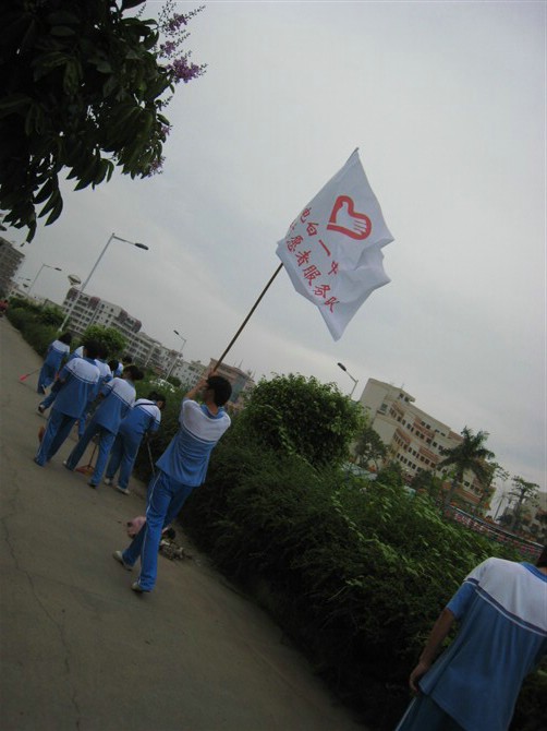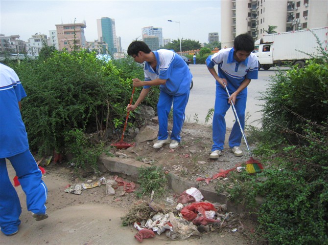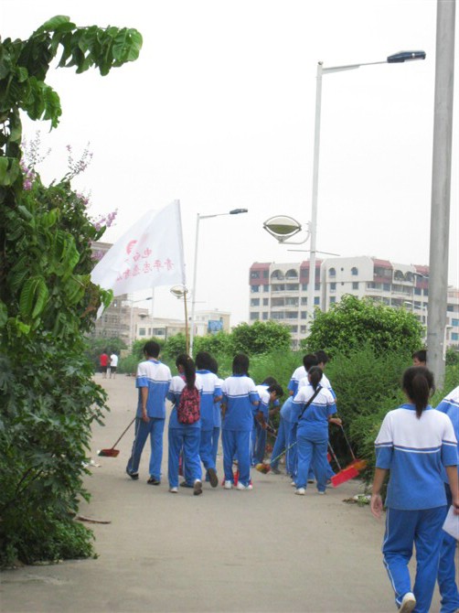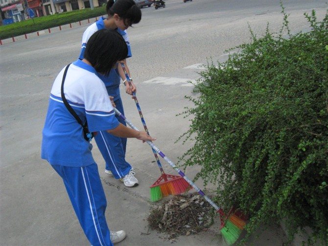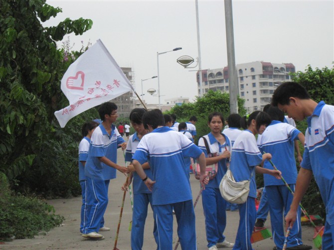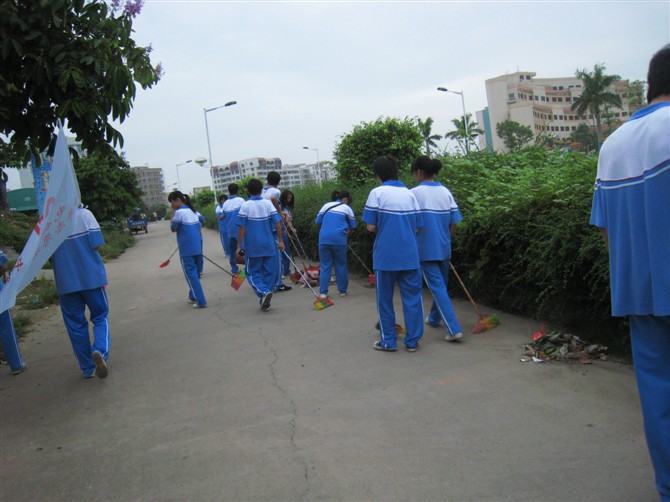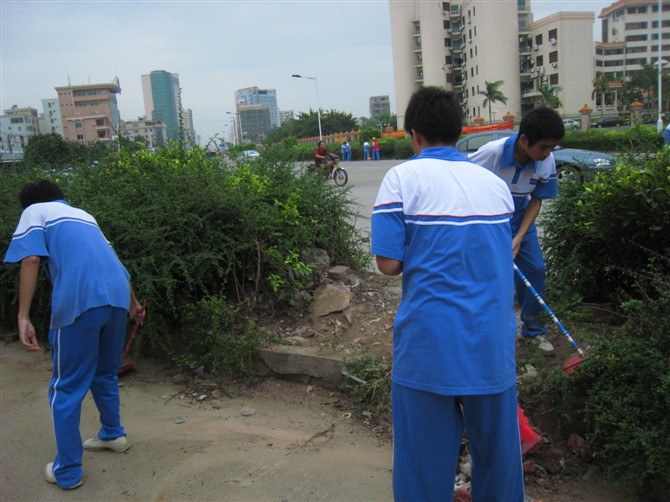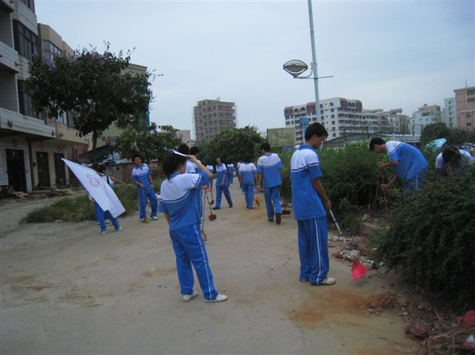 为积极响应县委县政府关于加强我县环境卫生整治工作,不断提高市民文明素质和卫生意识,营造整洁、祥和、优美的城乡环境,以崭新的面貌庆祝新中国成立60周年。电白一中团委根据上级指示精神,在26日开展志愿者美化环境大行动。