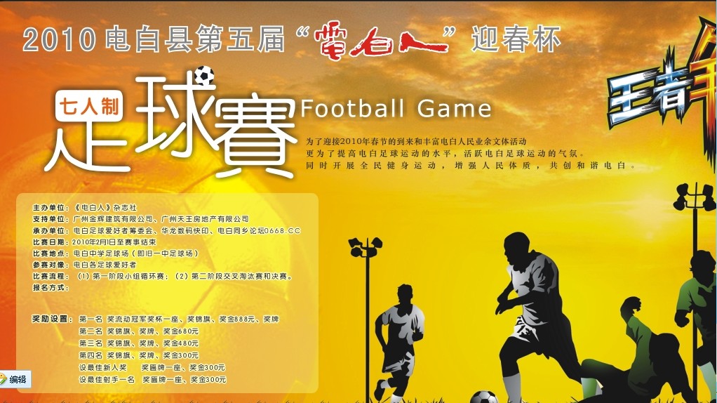 2010年电白县第五届《电白人》迎春杯七人足球比赛正式报名啦!