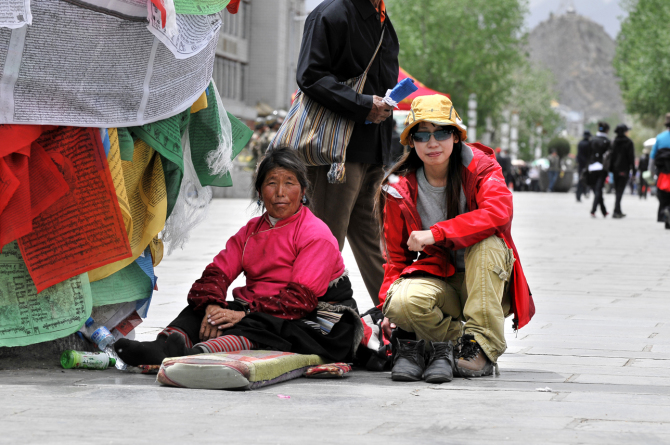在大昭寺捡到二个驴友,小强与黄军,其中一个叫小强的说自从05年感情失败后 就自己一个人到了拉萨 ,那次在拉萨一呆就是2个月 ,回家后 一直耿耿于怀 ,所以自己买了车,然后就经常在网上约游客走川藏线,也相当于在他喜欢的事情里面找点米,从成都开车走川藏线到拉萨,历时10天,每人车费3500元,一车四个人下来就是14000元。