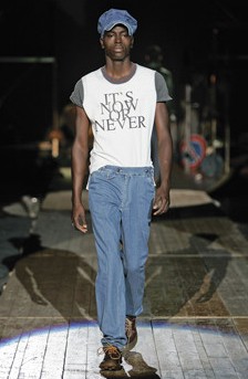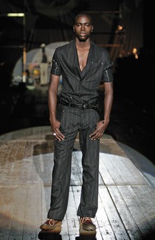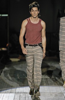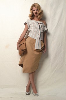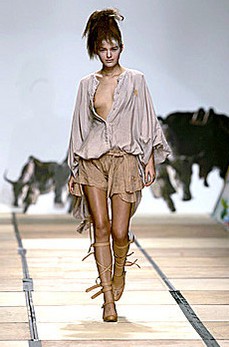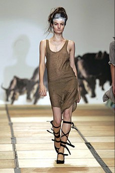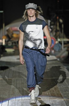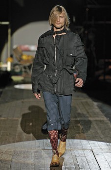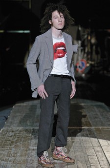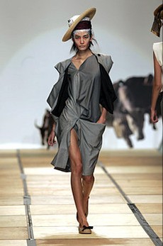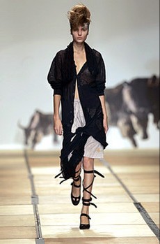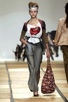 身为"朋克教母".vivienne westwood的创作灵感多数来自于反传统.恋物狂.英伦历史.街头文化的年轻人借着离经叛道的装扮来宣泄内心的不满.而在这样的理念与触动下,皮革,扣针,长拉链,格仔都被作为重要元素的融入设计,整体感觉帅气而颓[attachmentid=16879]晚装: