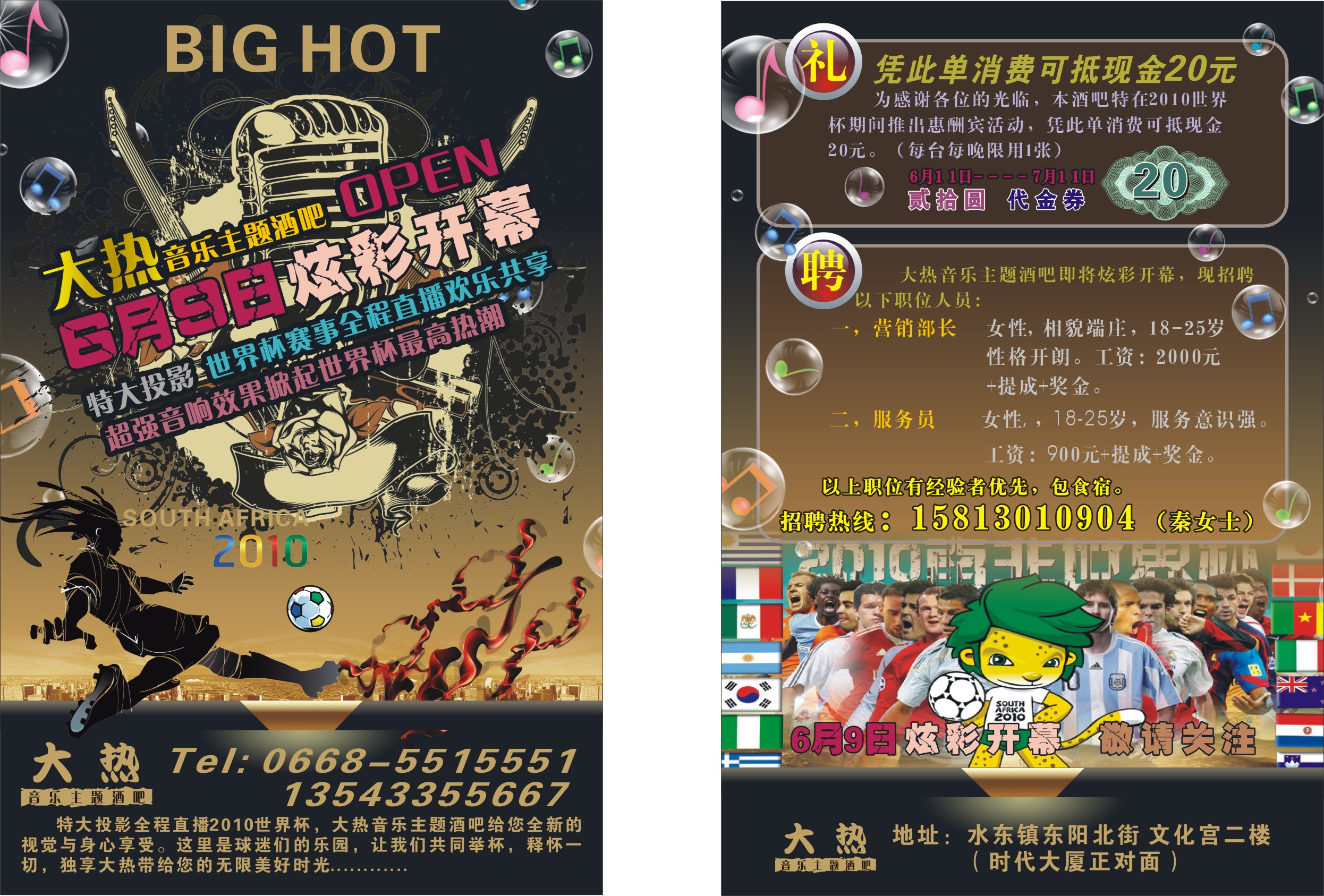 G Goals 幼儿园 注册 2010-04-21 消息 16 反馈评分 0 点数 0 2010-06-05 #1 我们一起到大热酒吧感受最好的看球效果吧。 附件 sw.jpg 295.7 KB · 查看: 621 宇哥酒吧传单.jpg 1,000 KB · 查看: 635 sw.jpg 295.7 KB · 查看: 637 宇哥酒吧传单.jpg 1,000 KB · 查看: 617