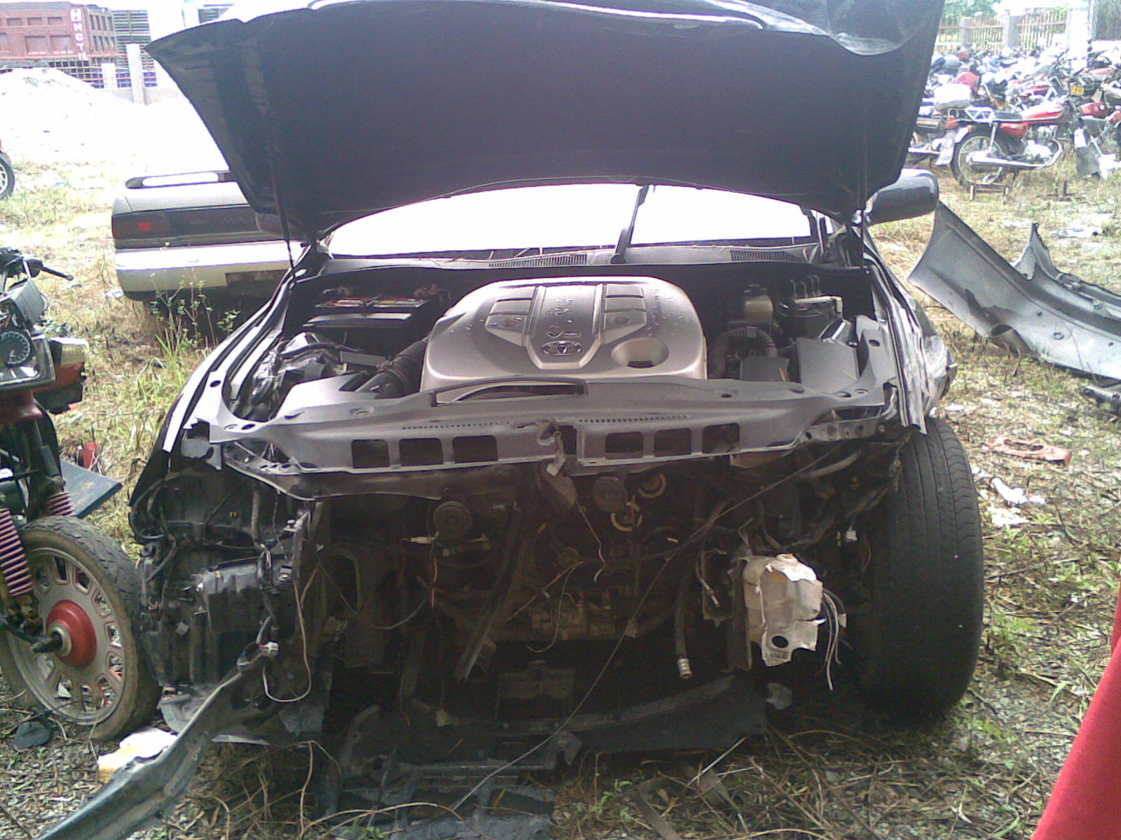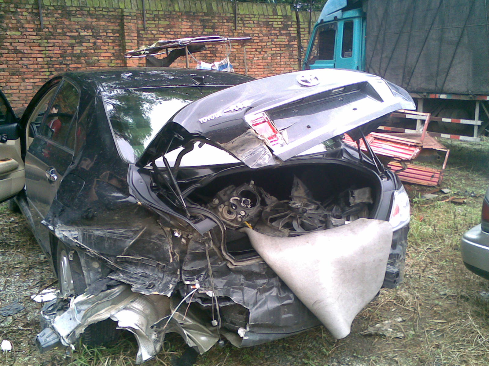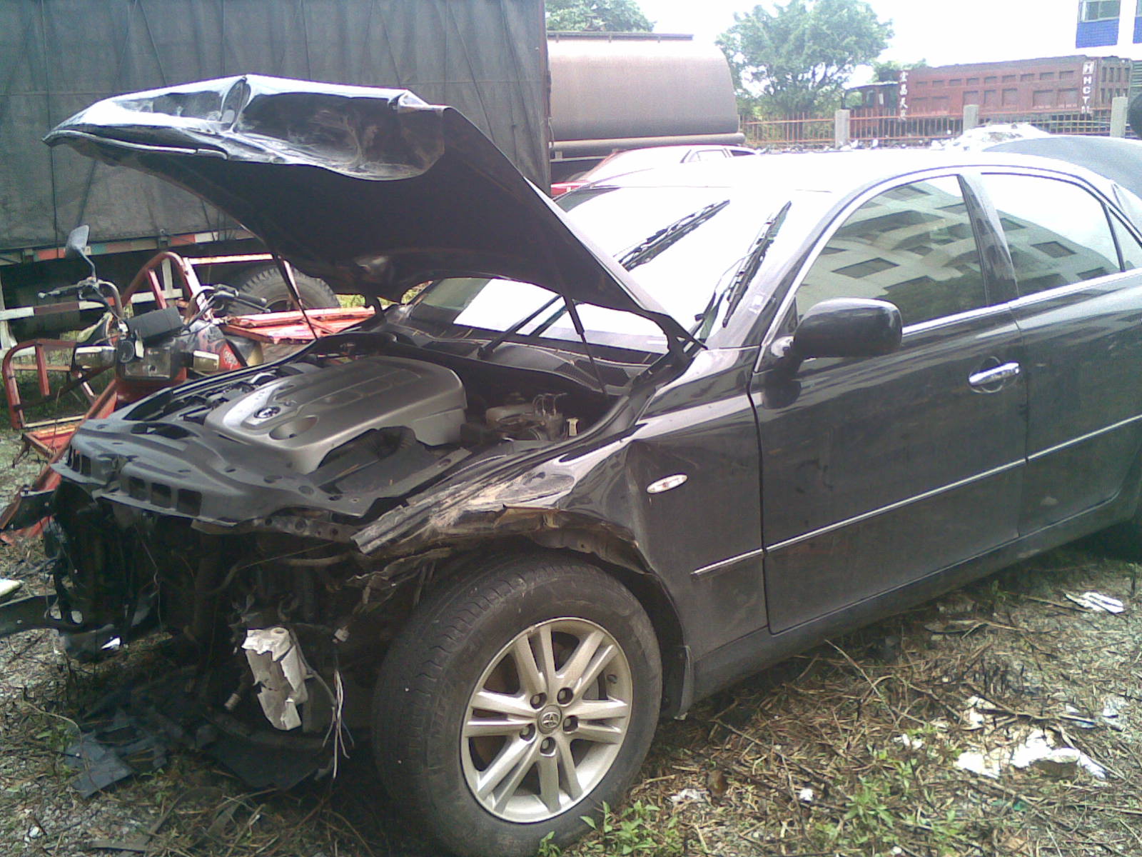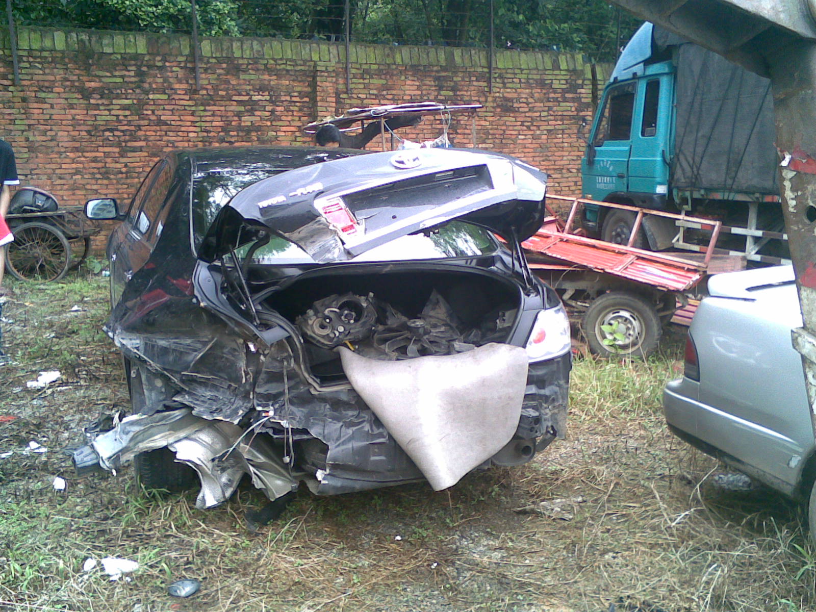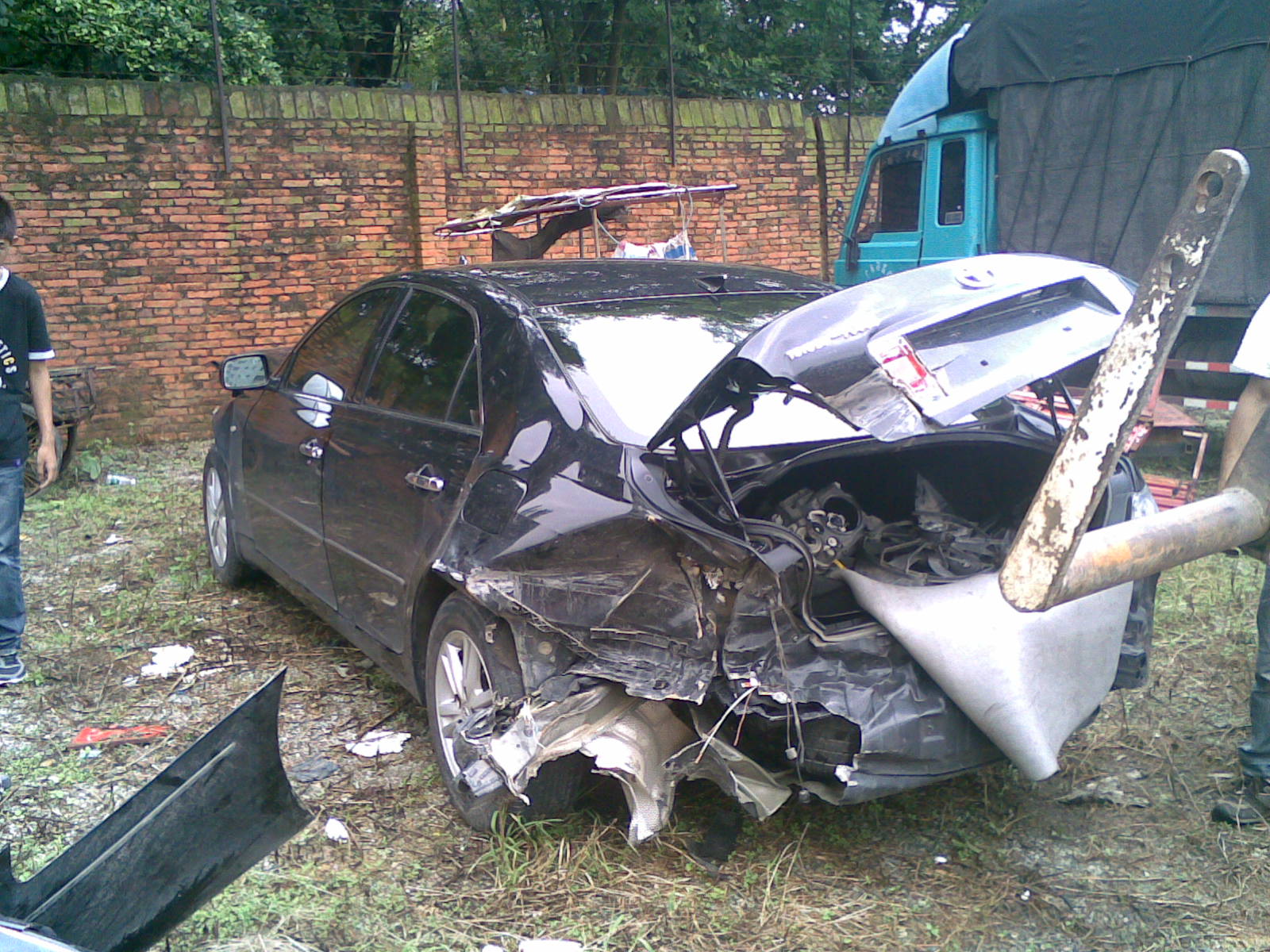 九号晚上12点左右,茂名高水路段发生一起严重车祸,车主驾驶一汽丰田的锐志小轿车,车主说当时的驾驶时速已经达到了110-120这个阶段,不知因何情况直接撞上护栏,然后车子旋转了5.6圈三百六十度,当时车上乘坐4个人,副驾驶室乘坐人员受了轻伤,子前后严重损坏,车头水箱和一堆零件都撞飞再马路上了,大梁也严重变形,保险公司和交警和一汽丰田的人员都来了现场拍了车照片。
