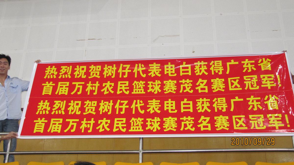 [attachmentid=246155][attachmentid=246156]热烈祝贺树仔篮球队代表电白县参加广东省首届万村农民篮球赛,以五战全胜的骄人成绩夺得茂名赛区冠军,并于12月份代表茂名市参加在广州举行的全省总结赛。我们的目标是力争全省冠军,为茂名争光,为家乡赢得更高的荣誉!
