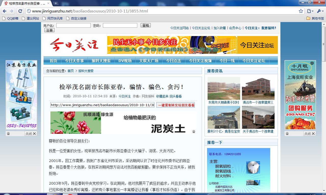 yuka 博士生 注册 2010-06-10 消息 1,214 反馈评分 0 点数 0 2010-10-27 #91 QUOTE(潘火鸡 @ 2010年10月18日 Monday, 02:42 AM) 该女投诉到今日关注了 http://www.jinriguanzhu.net/baoliaodasousu...10-11/3855.html [snapback]3044977[/snapback] 很好!借助网络,让贪污遁形!