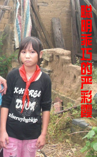 在许校长的带领下,我们见到了严彩霞,一个有着水灵灵的大眼睛,很漂亮很可爱的小女孩走进了我们的视线;但在她的神情里却让我们看不到童真,看到的却是一脸的无助与失落;