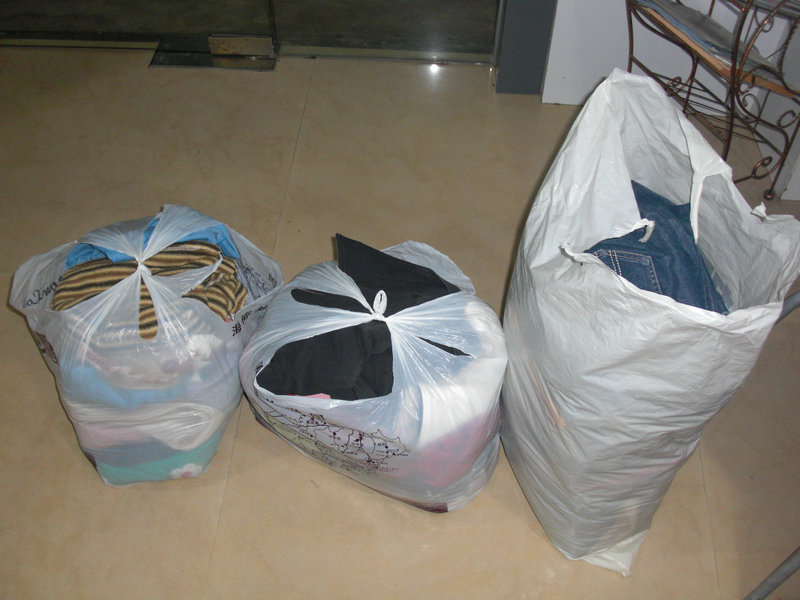 13日接到电白杨大姐捐献的旧衣服一批,特此确认!