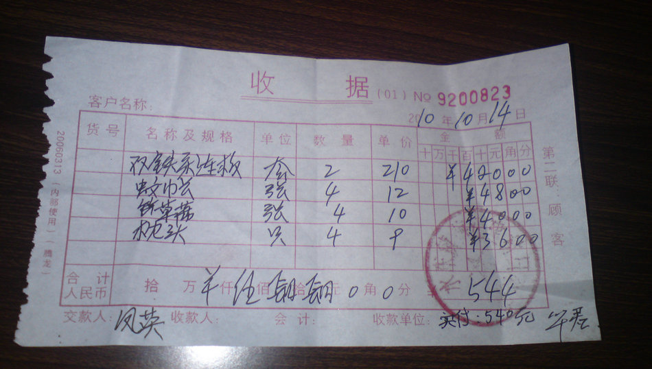 合共:544元,实付540元