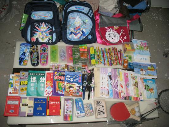 谁知从汽车后排座抱出来的,不止三个书包和四本字典,还有一箱子的学习文具和课外书、运动用品等,666777对三姐弟的殷切希望感动了我们!也感动了学校的校长和老师,大家开玩笑道:可以给三姐弟用到毕业了!