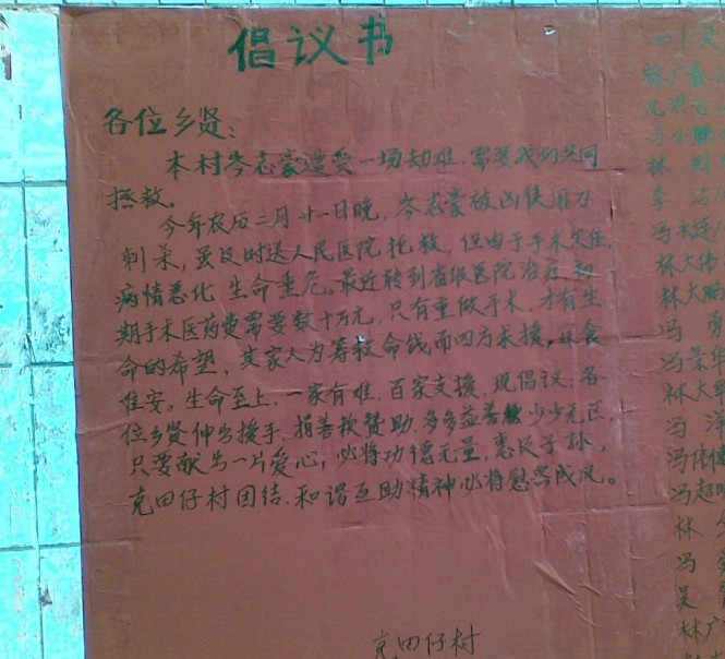 我有在论坛一个帖子求助,村里为挽救一条90后的生命,正在踊跃发动捐款,但是还只是杯水车薪.希望有爱心人士能帮助一下,先把性命保住.