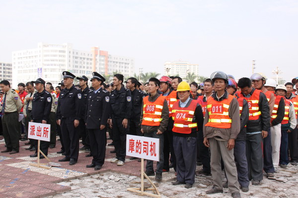 在仪式现场,集合着公安、交通、水东镇、青年志愿者、摩托车司机、环卫等部门组成10个人员方阵,共有1500余人参加了此次启动仪式。