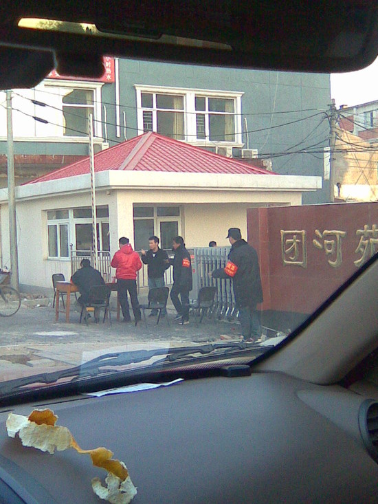 @wentommy:赵连海家所在的团河苑小区门口。居民要出示证件,访客要登记,若去雪梅家,还要核发通行证。我问中年男:为什么这么多看守?答:怕他们(赵连海家属)扰民。