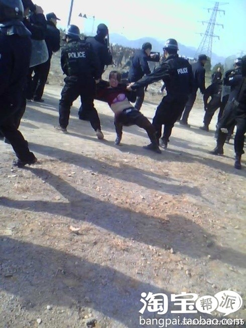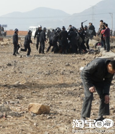 警察在外围保护匪徒殴打抵抗强拆户