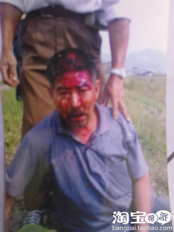 就算是嫌疑犯都有人权啊,用不用打得这么给力呀还一大帮人围着,他们还有抵抗力吗?旁边倒在田埂的那位估计是没人帮他叫白车的了,最近镜头的那位老伯貌似正在捡石头,唉~这都啥跟啥了?当年打美、日还讲优待俘虏呢,可能都没打得这么狠吧。