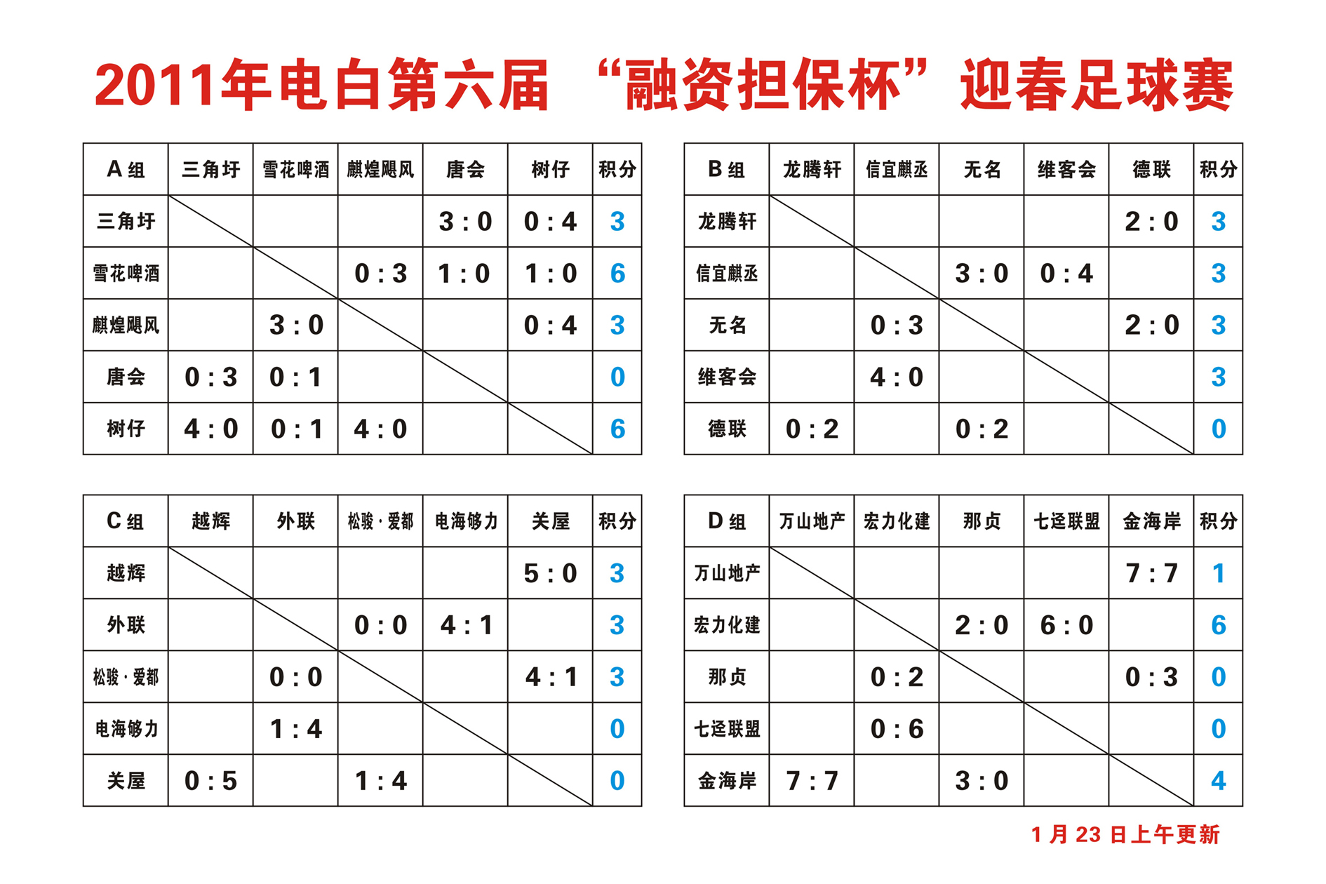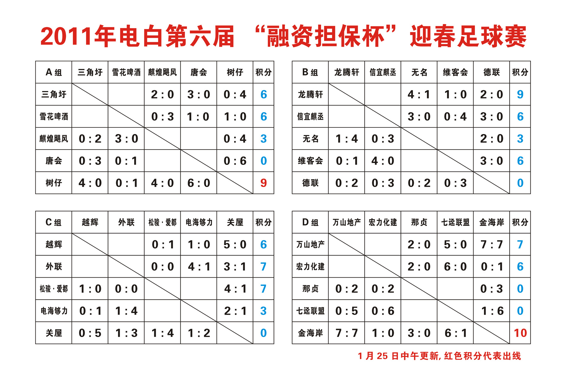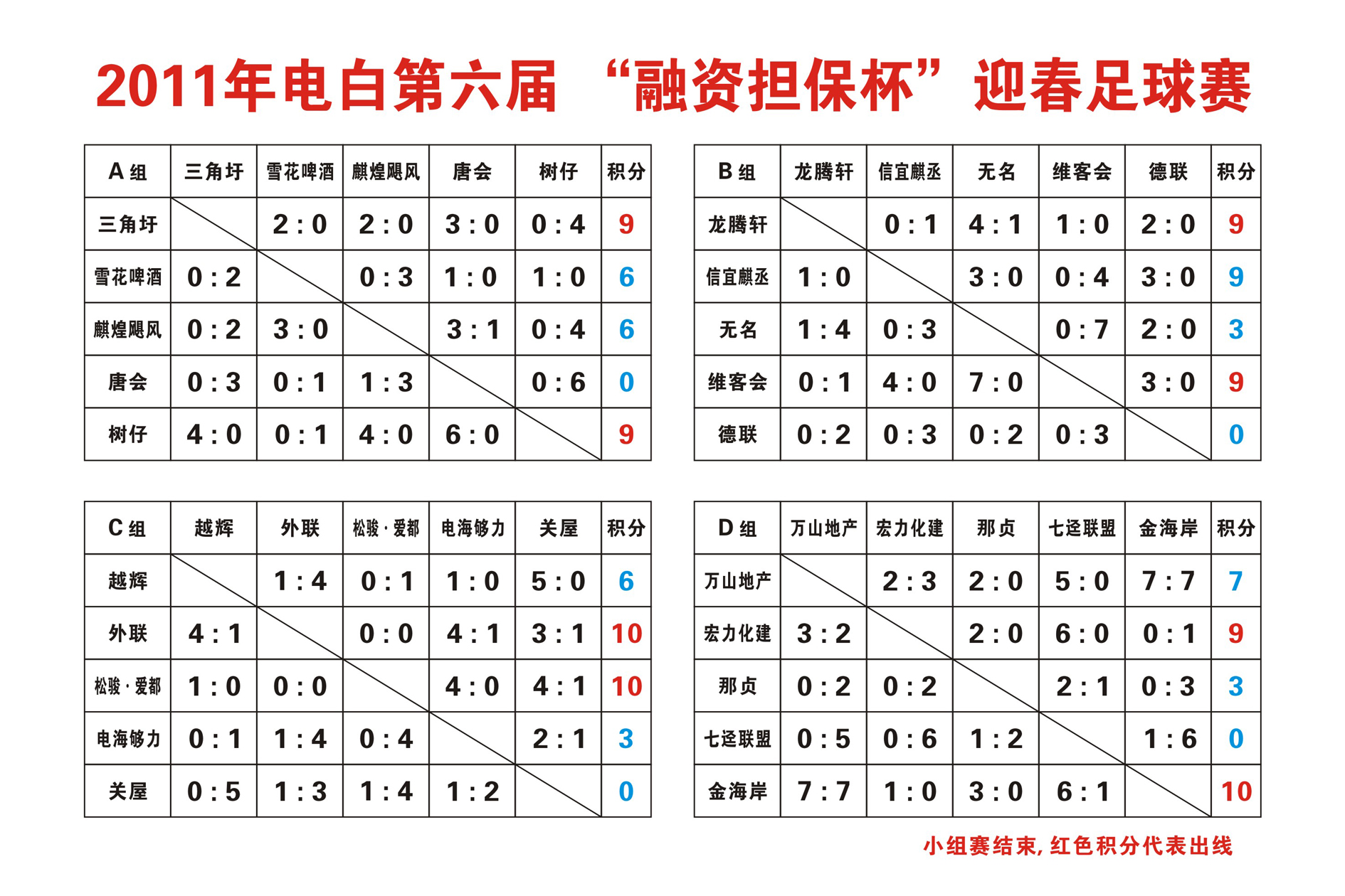 2011年电白第六届“融资担保杯”迎春足球赛-积分表 (1人在浏览)