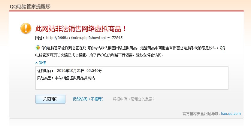 H hui8u8 幼儿园 注册 2007-10-18 消息 16 反馈评分 0 点数 0 2011-04-12 #1 这到底怎么一回事?打开论坛时,QQ管家竟报此网站非法销售网络虚拟商品?从而屏蔽了网站..奇怪了!!! 附件 1.jpg 56.3 KB · 查看: 326
