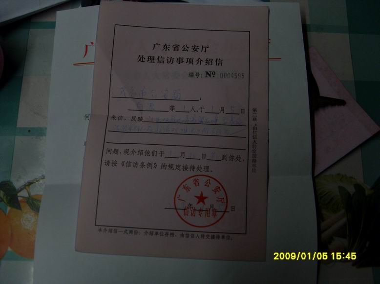 2008年8月5日广东省电白县观珠镇江下村委会西边坑村黑恶分子汪亚双、王亚梅夫妇,以其女儿汪彩燕被人奸后怀孕,而故意对无辜的上访控告人勒索三万元,控告人一生老实本分,敬佛修身,积德行善,对飞来横祸,深感屈辱和痛心,在万般无奈下,积极求助公安机关解决。2008年8月6日天刚亮控告人就赶了十几里山路到电白县公安局观珠派出所,一直等到派出所的干警上班,找到在所的领导戴飞指导员报案•求助,但被控告人戴飞不理不睬,冷言冷语,控告人无奈含泪回家,只好求助远在深圳打工的 唯一儿子梁亚峰回来与汪亚双协商和好解决。