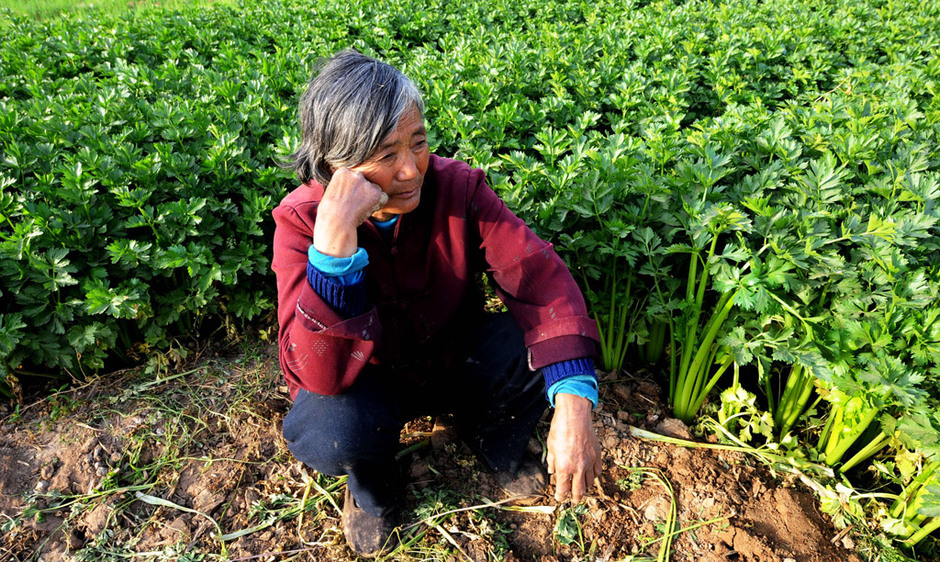 4月18日,面对自家丰收的芹菜,河南中牟县明山路村农民邢素荣因没有销路而愁眉不展。据中国之声《央广新闻》报道,目前正是芹菜大量上市的季节,但是丰收后滞销的芹菜却成了河南省中牟县一些种植户的心病:品相好的芹菜一斤只能卖五六分钱,20斤芹菜只值一个烧饼钱。一些品相差的芹菜则被种植户丢弃到河中或喂鸡鸭。