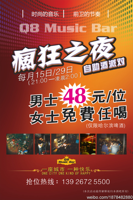 J jackie444 荣誉会员 荣誉会员 注册 2006-05-10 消息 2,241 反馈评分 3 点数 61 年龄 42 2011-05-11 #1 Q8酒吧 疯狂之夜 男士48元/位 女士免费 任饮! 地址:棕榈园魅力东方直下20米 附件 6ff75fc0gw1dh2ajn4n72j.jpg 209.1 KB · 查看: 363