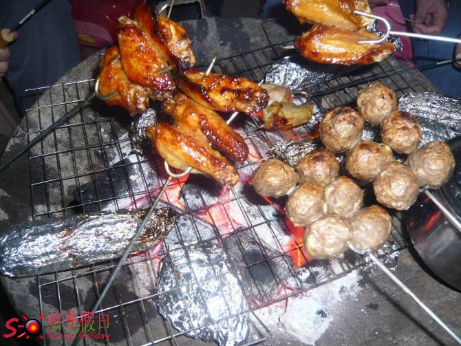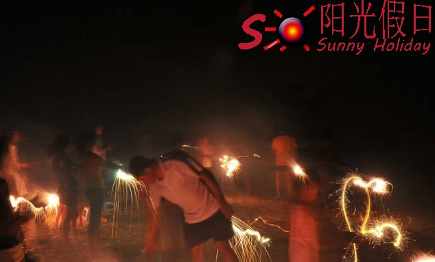 天黑了,大树岛party正式开始上演了,唱歌跳舞当然不算特别,放孔明灯、烧烟花,一种无拘无束的感觉才最过瘾。最爽的还是烧烤喝酒,啤酒得大碗大碗的喝,男人们在月光下边饮酒边吹水,天南海北,不亦乐呼。