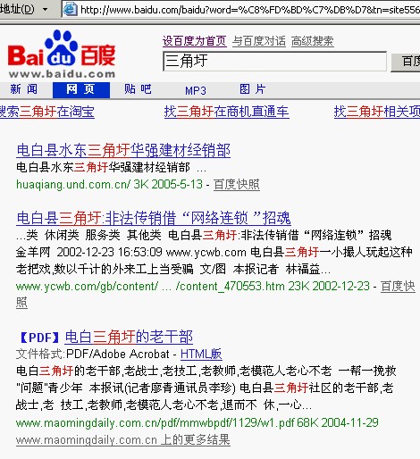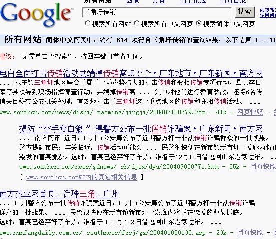 QUOTE(B C @ 2005年05月17日 Tuesday, 06:59 PM) 呵呵 最近三角区进行了清理 啊 清理传销的聚集地 现在外省人很少出来行动了 [snapback]348528[/snapback]