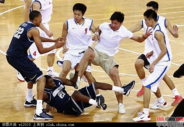 图中这二个八一球员现在世界驰名了,在谷歌搜索georgetown+china+brawl这张图片有几十张之多!