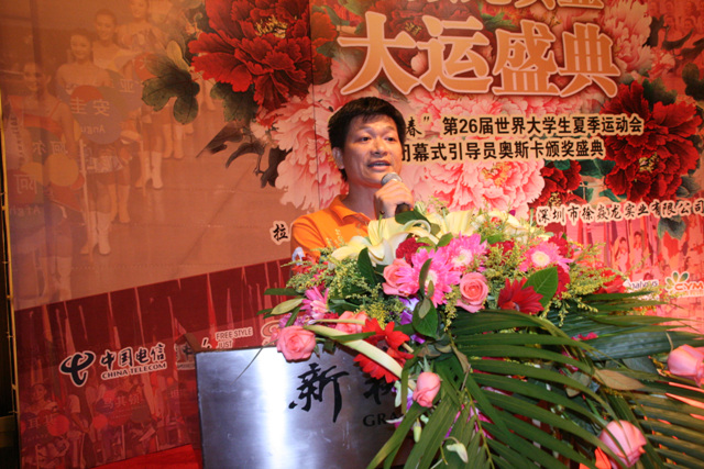 2011-08-24深圳南山大运会开幕场附近,电白在深圳的乡贤企业邵总赞助深圳第二十六届世界大学生运动会开闭幕式引导员表彰大会