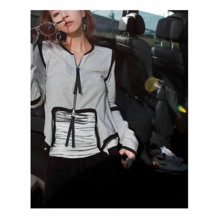 9866-1 撞色拼接圆领拉链小外套短外套46.00 灰色 混纺棉 0.30Kg.jpg
