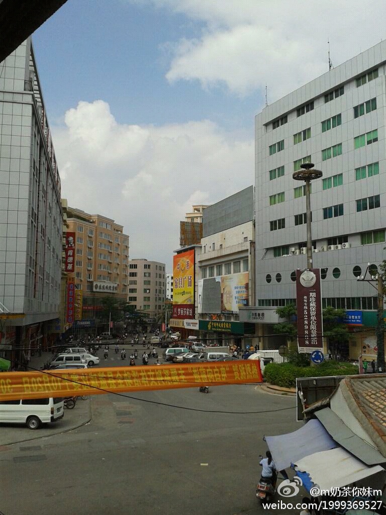 四层楼的左角,有树木,以前正是进入西湖的路口。以前进入西湖的路口,中间有一排树。
