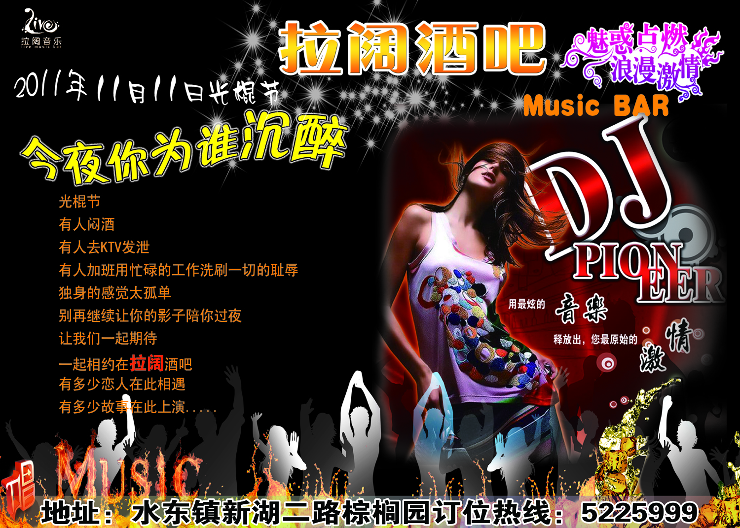 B binbin0668 幼儿园 注册 2008-02-04 消息 26 反馈评分 0 点数 0 2011-11-09 #1 2011年11月11日光棍节 拉阔酒吧约定你 附件 拉阔酒吧副本1.jpg 1.7 MB · 查看: 668