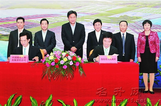 中国港湾公司是中国交通建设股份有限公司的全资子公司。经过协商,市政府与中国港湾公司将就茂名滨海新区内的港口及城市综合开发项目的投资建设进行合作,具体包括施工、监理、采购以及相关的策划、开发、投融资、经营管理等。首期投资项目包括在博贺新港建设多个2至8万吨级液体化工码头泊位、通用码头泊位及防波堤、航道等,并参与博贺湾新城的土地开发。